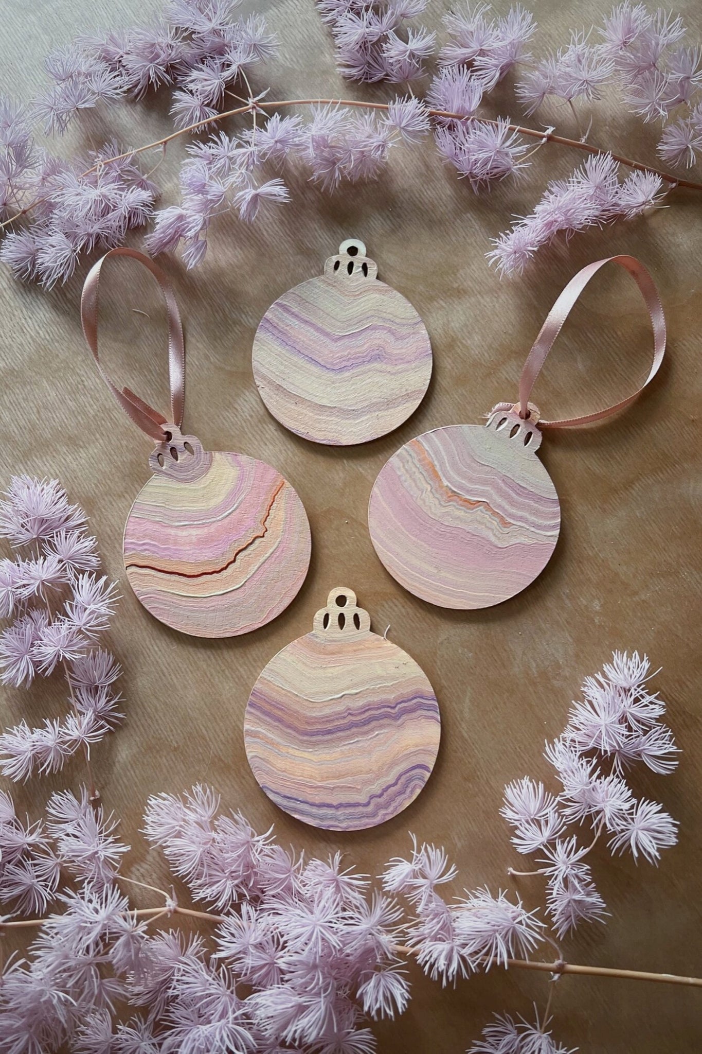 Both sides are hand painted both on wood with a ribbon to match - each ornament is unique. ornament is approx 3.5”
