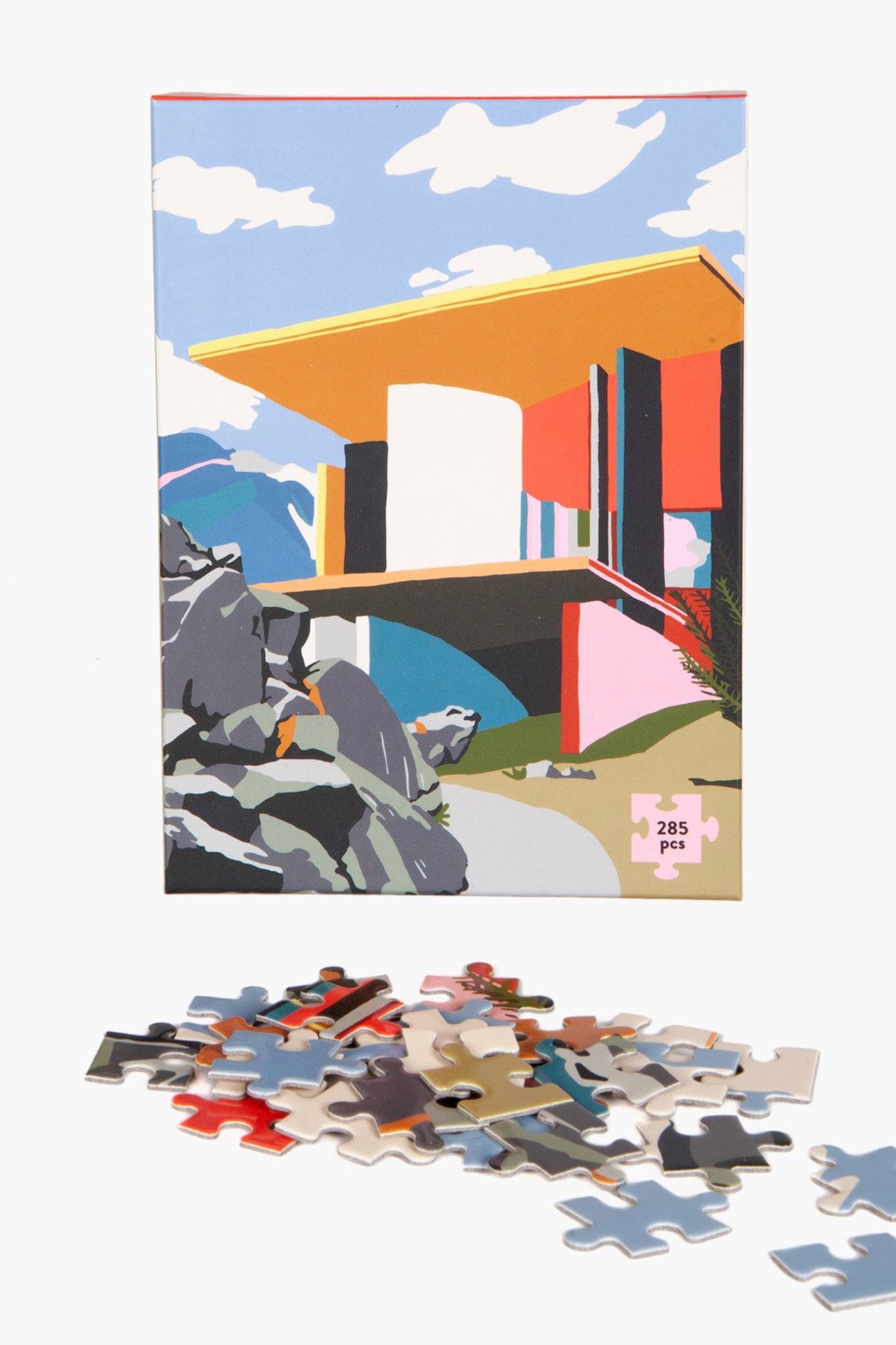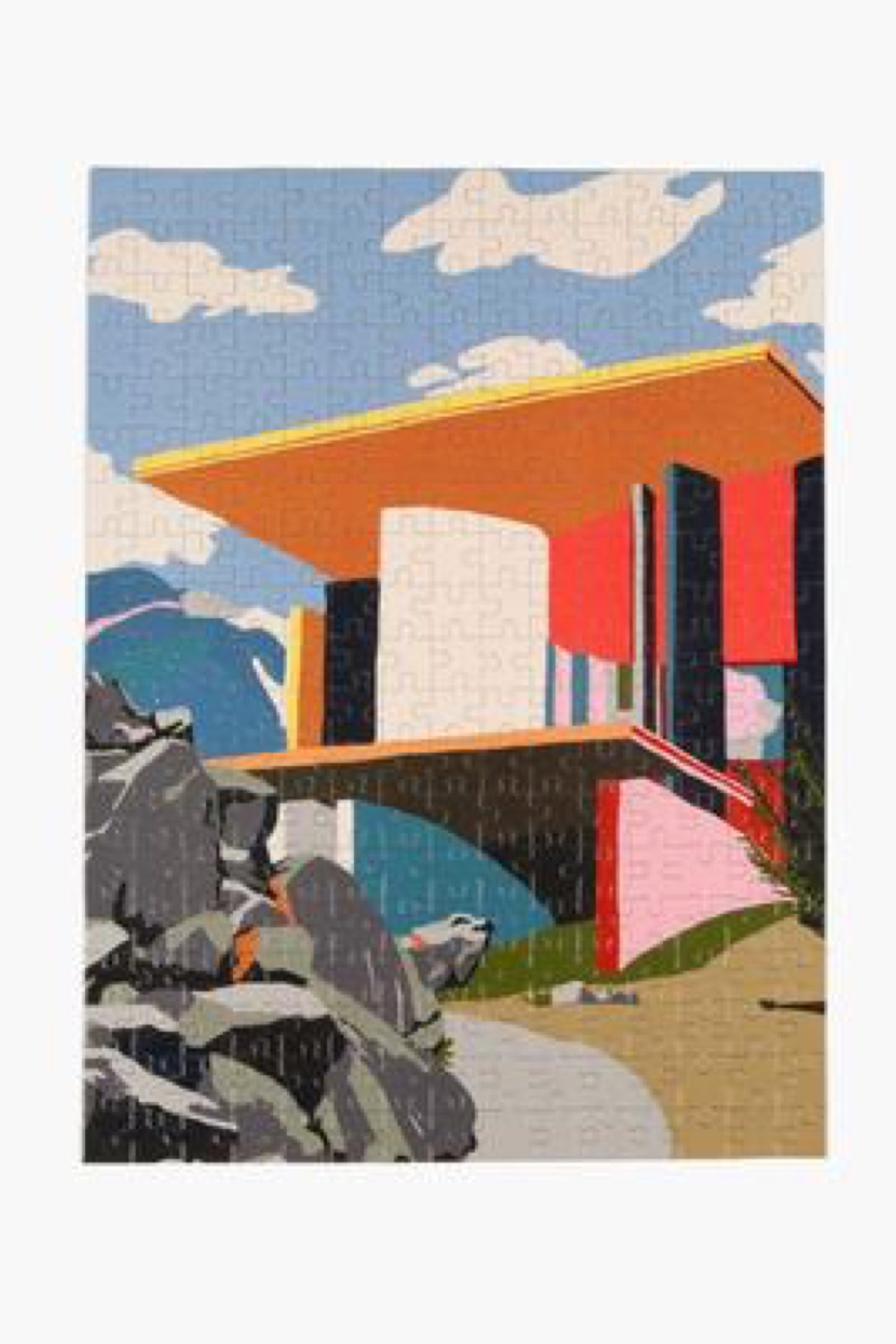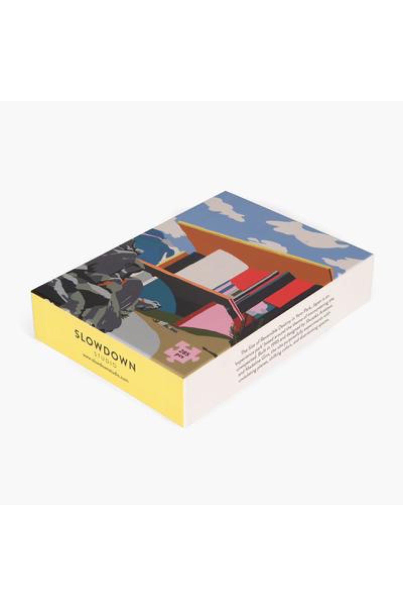 Slow down and enjoy some piece of mind with our jigsaw puzzles. Designed by Australian artist Charlie Bennell, this 285 piece puzzle features one of our favorite buildings in architecture - The Site of Reversible Destiny in Yoro Park, Japan. This site is an 'experience park' based around the theme of encountering the unexpected. Built in 1995 and designed by Shusaka Arakawa and Madeline Gins, the site purposefully experiments with undulating planes, shifting colors, and disorienting spaces.